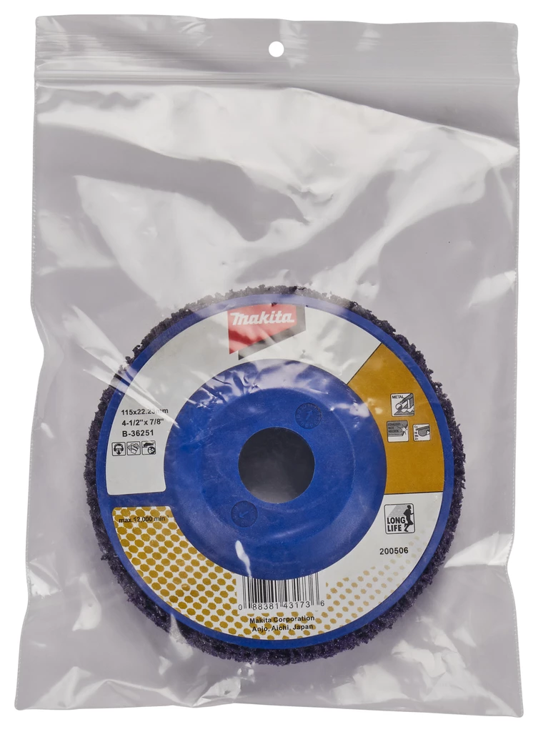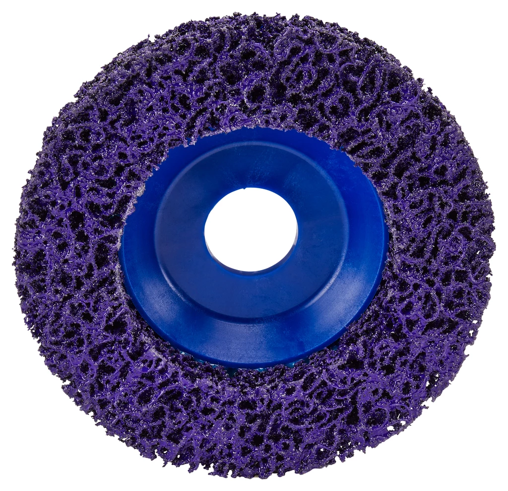 - Disque de nettoyage Makita violet en carbure de silicium avec dos renforcé en nylon.