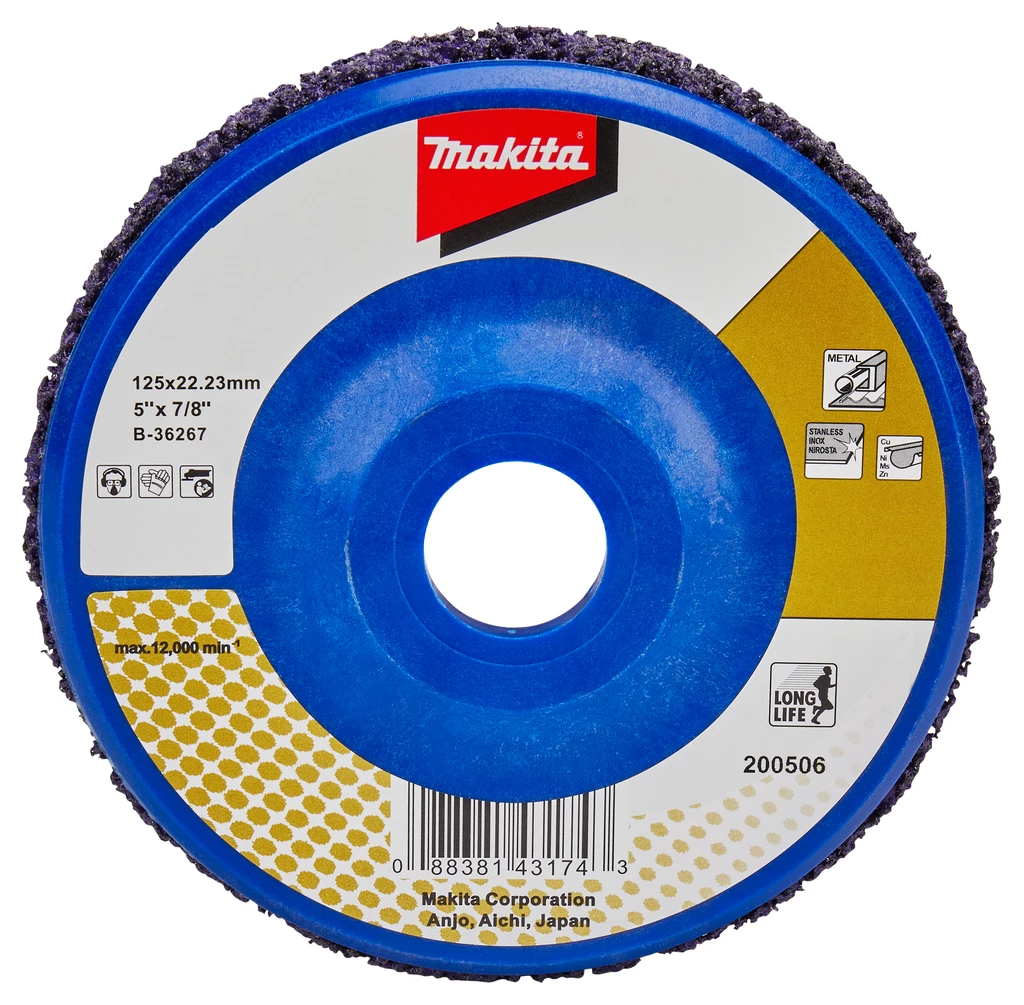 - Disque de nettoyage Makita violet en carbure de silicium avec dos renforcé en nylon.